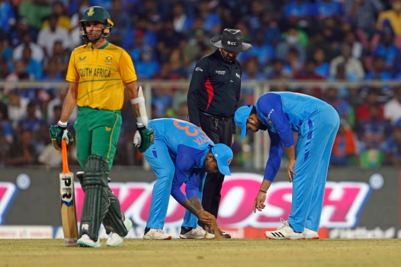 लक्ष्य का पीछा करने उतरी दक्षिण अफ्रीका की शुरुआत खराब रही। पहले तीन ओवरों में ही 10 रन पर उसके चार विकेट गिर गए थे। अर्शदीप ने अपने पहले दो ओवरों में तीन विकेट लिए। तीसरे ओवर में लगातार गेंदों पर उन्होंने दो विकेट झटके। उन्होंने अपने पहले ओवर की तीसरी गेंद पर रेजा हेंड्रिक्स (0) को क्लीन बोल्ड किया और फिर अपने दूसरे ओवर में एडेन मार्कराम (8) और हेनरिक क्लासेन (0) को वापस भेजा। हालांकि डेविड मिलर ने हैट्रिक होने से बचा लिया। हार्दिक पंड्या ने रयान रिकेलटन (1) को आउट कर भारत चौथी सफलता दिलाई।