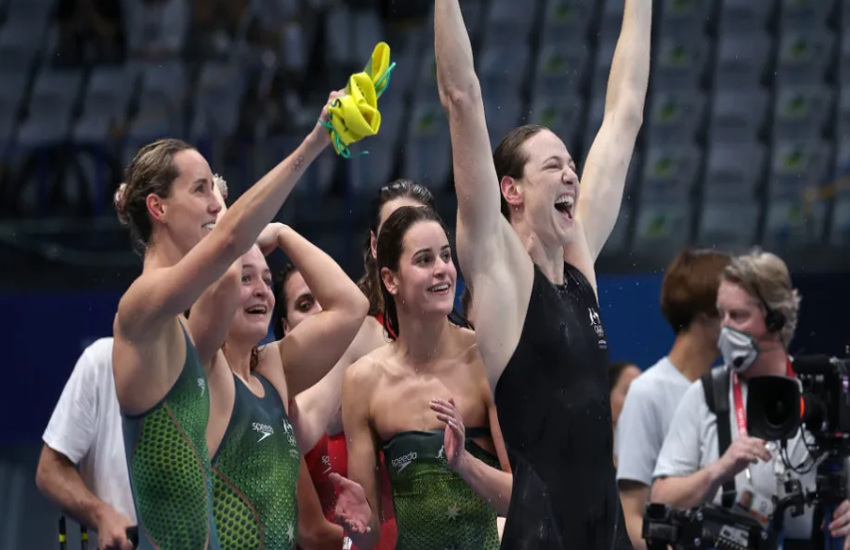 महिला 4गुणा100 मीटर मेडले रिले में ऑस्ट्रेलिया की तैराक केली मेकोन के नेतृत्व वाली चेल्सी हॉज, एमा मेकोन और केट कैम्पबेल की चौकड़ी ने 3 मिनट 51.60 सेकेंड का नया ओलंपिक रिकॉर्ड बनाया। इसके साथ ही उन्होंने अपने देश को इस स्पर्धा में पांच ओलंपिक में तीसरी बार स्वर्ण पदक जिता दिया। इससे पहले ऑस्ट्रेलियाई टीम वर्ष 2004 में एथेंस ओलंपिक,वर्ष 2008 में बीजिंग ओलंपिक में भी गोल्ड मेडल जीत चुकी है। ऑस्ट्रेलियाई टीम ने टोक्यो ओलंपिक में 3 मिनट 51.60 सेकेंड का नया रिकॉर्ड भी बनाया है। इसे पहले अमरीका ने वर्ष 2012 में लंदन ओलंपिक के दौरान 3 मिनट 52.05 सेकंड का ओलंपिक रिकॉर्ड बनाया था।