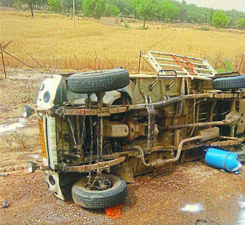 टायर फटने से दूध से भरी पिकअप पलटी, दो गंभीर घायल