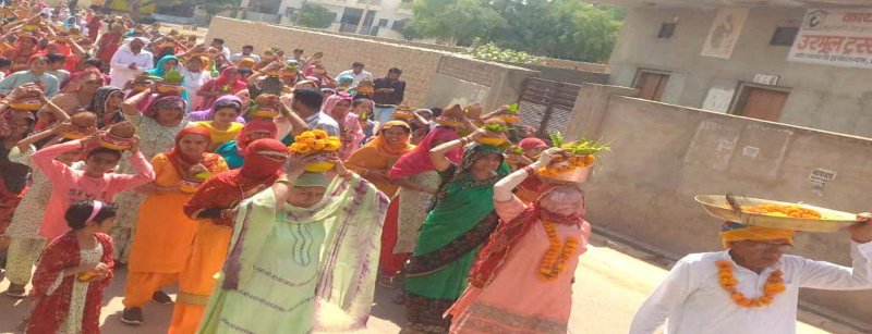 सादुलशहर. श्रीमद् भागवत ज्ञान कथा महोत्सव के उपलक्ष्य में निकाली कलश यात्रा का दृश्य।