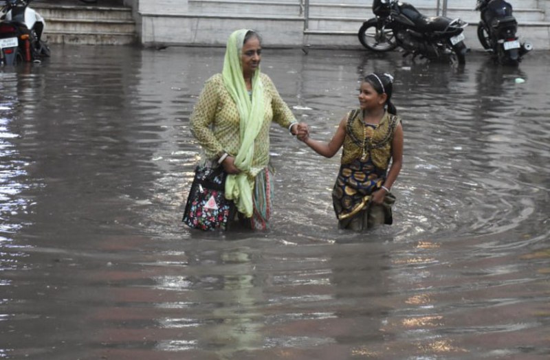 बीकानेर. बुधवार को ग्रामीण इलाकों से लेकर शहर तक झमाझम बरसात हुई। कई जगह जलभराव हो गया। उमस अचानक ही नदारद हो गई। दोपहरह दो बजे बाद बादलों ने पहले ग्रामीण इलाकों को भिगोया। बाद में शहर की तरफ रुख किया और करीब साढ़े चार बजे बरसना शुरू किया। करीब डेढ़ घंटे तक कभी तेज, तो कभी धीरे-धीरे बरसात हो रही। इस दौरान 22.2 एमएम अर्थात एक इंच के आसपास बारिश दर्ज हुए।