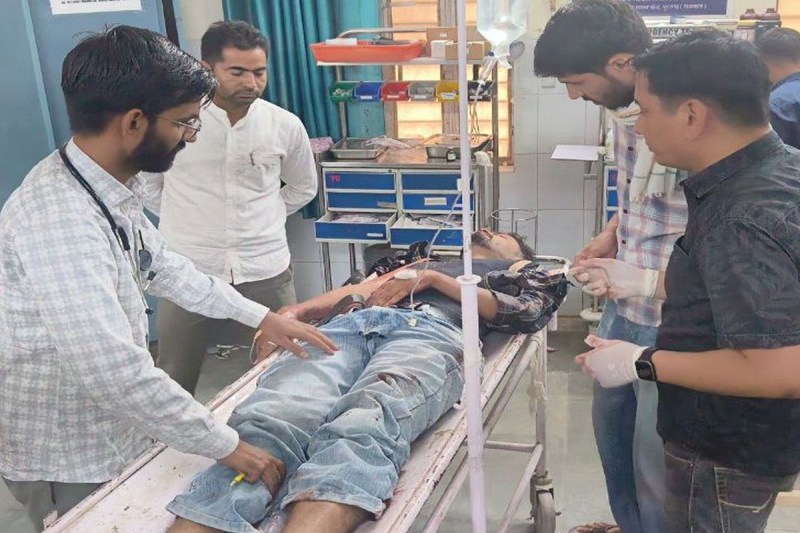 अस्पताल में घायल का इलाज करते चिकित्सक।