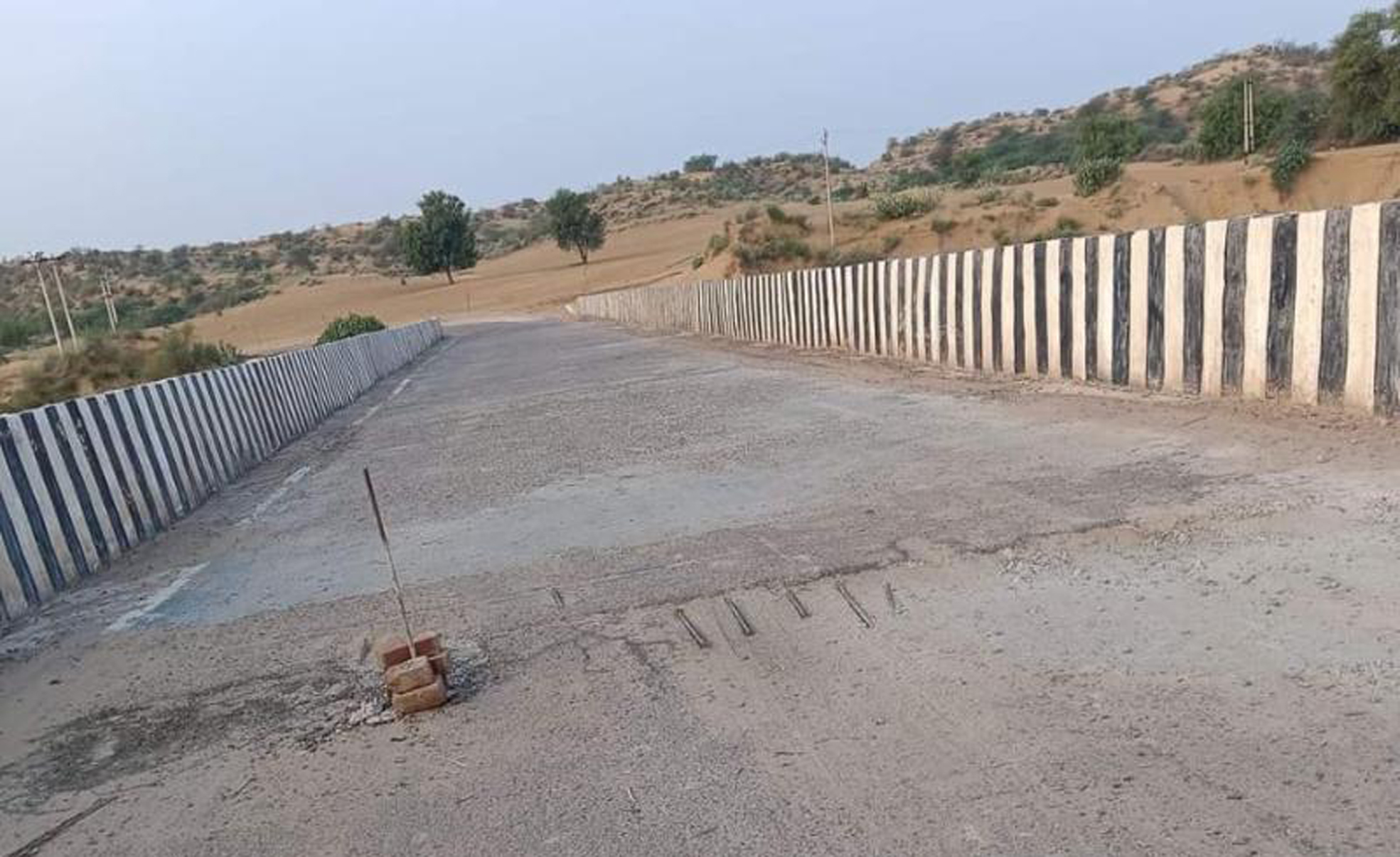 सरदारपुरा खर्था से ठेठार के बीच बने घग्घर पुल पर सड़क से बाहर निकले सरिये