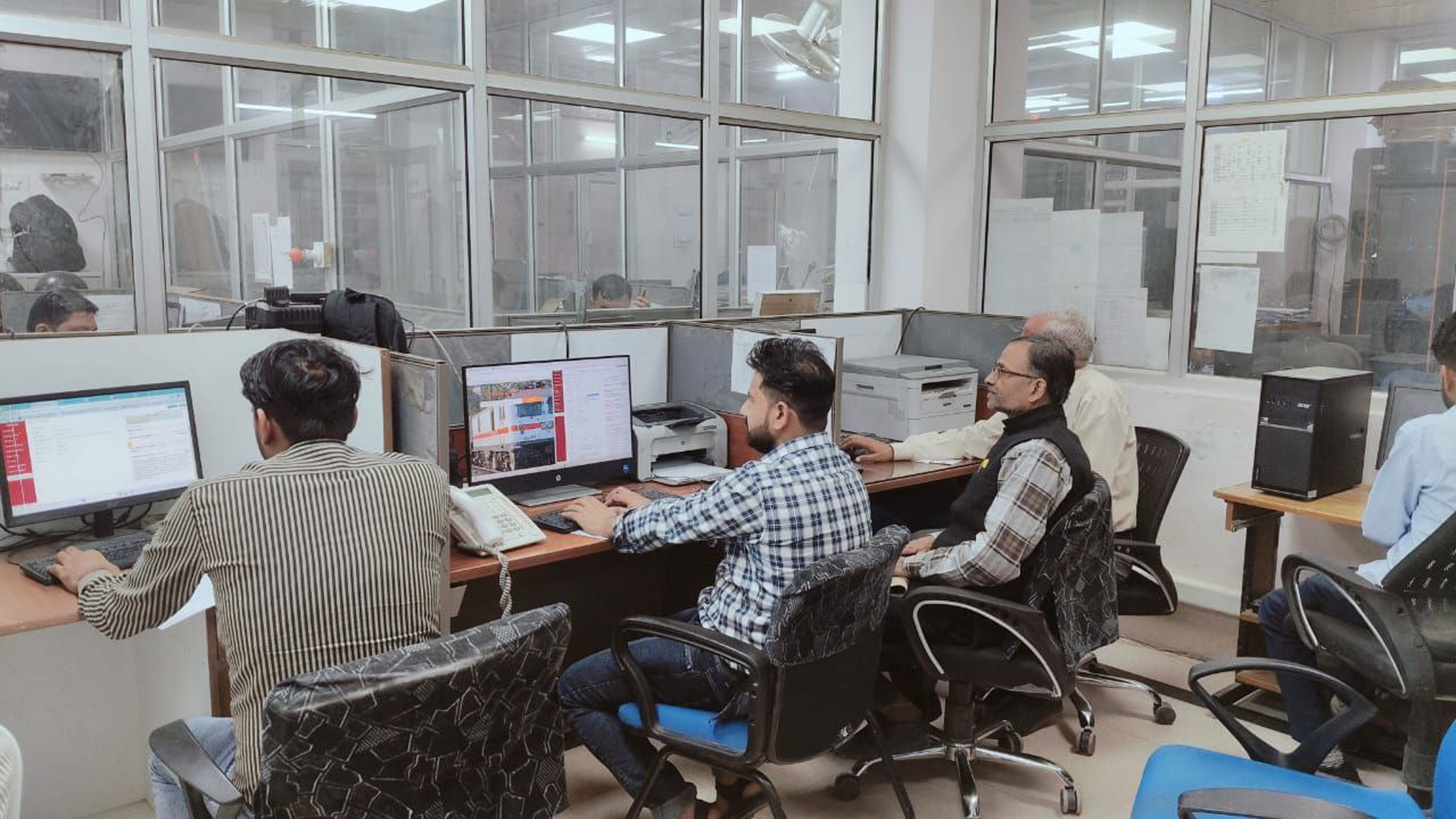 बीकानेर रेल मंडल के वॉर रूम में तैनात रेल कर्मचारी।