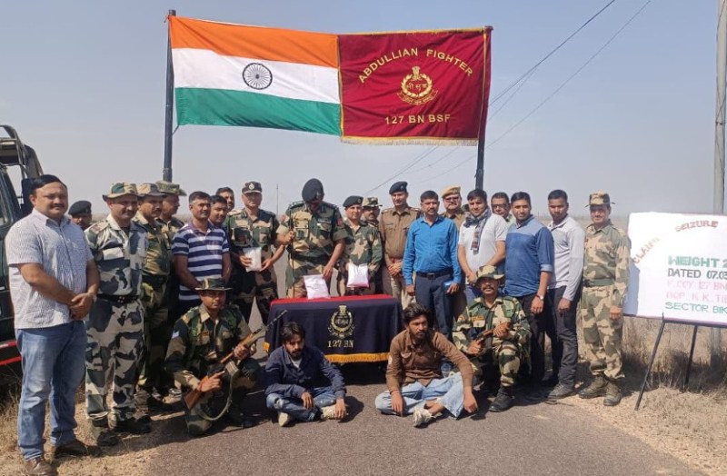 श्रीगंगानगर/ अनूपगढ़। बीएसएफ ने पाकिस्तान से आई हेरोइन के साथ पंजाब के चार तस्करों को पकड़ा है। इनके कब्जे से 2 किलो 680 ग्राम हेरोइन बरामद हुई है। खुफिया सूत्रों से मिली जानकारी के अनुसार श्रीगंगानगर जिले से सटी भारत-पाक अंतरराष्ट्रीय सीमा पर घड़साना क्षेत्र में बीएसएफ की 127 वीं वाहिनी के अधीन केके टिब्बा सीमा चौकी के इलाके में यह कार्रवाई मंगलवार तड़के 4.30 बजे हुई।