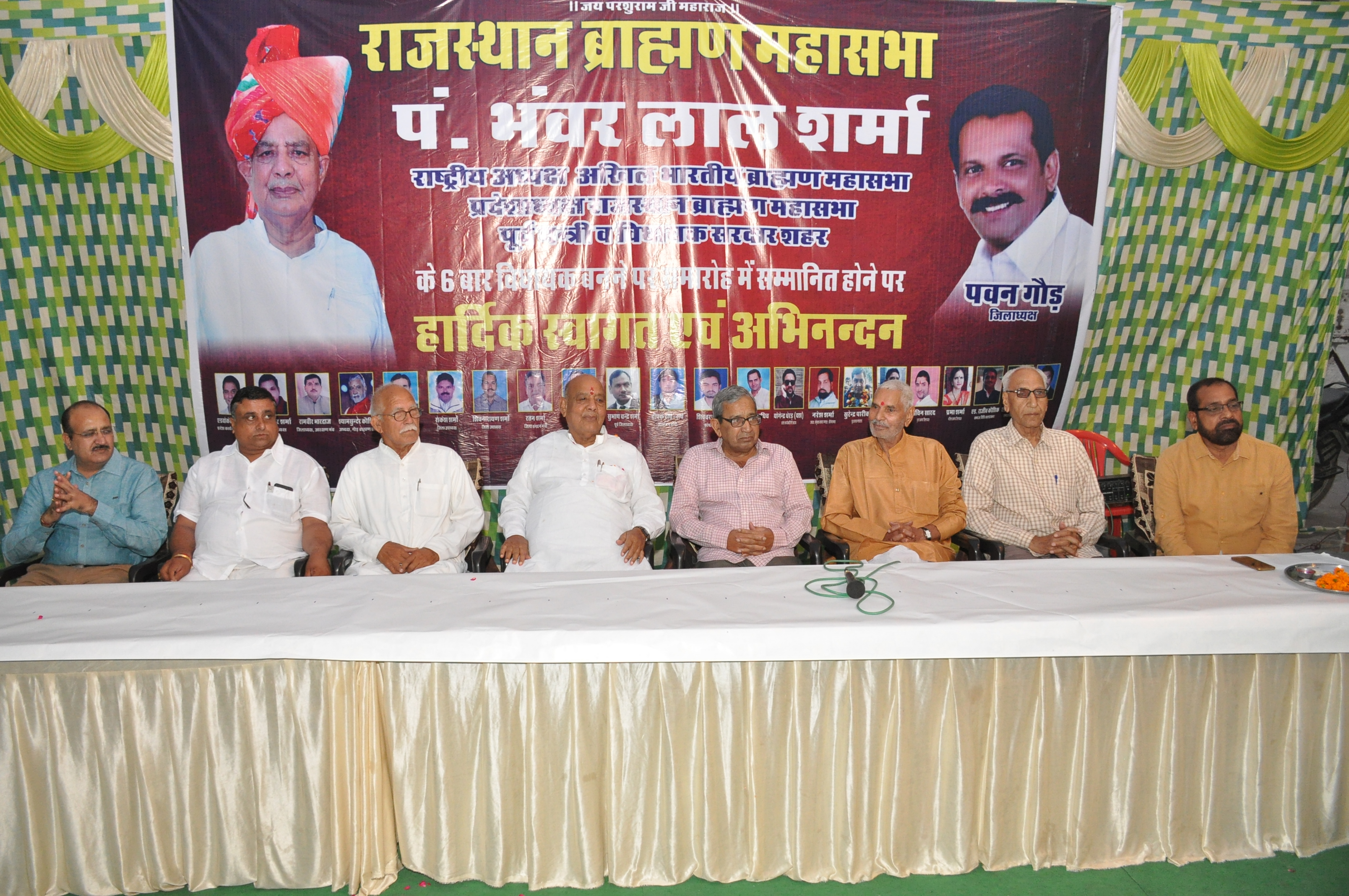 इलाके के ब्राह्मणों को आरक्षण के संबंध में कहा कि दक्षिण भारत में ब्राह्मणों को आरक्षण मिल चुका है लेकिन प्रदेश में यह प्रक्रिया अटकी हुई है।उन्होंने समाज के लोगों से आह्वान किया कि अधिकाधिक संख्या में जनप्रतिनिधि निर्वाचित करें ताकि जहां अधिक संख्या होगी तो हक लेने में देर नहीं लगेगा। इस कार्यक्रम में ब्राह्मण समाज के हीरालाल गौड़, जगदीश तिवाड़ी, सीबी ओझा, ओमप्रकाश गौड़, व्यापार मंडल के नरेश शर्मा, यूआईटी सचिव कैलाश शर्मा, सीओ सिटी तुलसीदास पुरोहित मंचासीन थे। कार्यक्रम में पार्षद पवन गौड़, राजकुमार शर्मा डीटीडीसी, रवि शर्मा, प्रदीप धेरड़, प्रभा शर्मा, करणा शर्मा, प्रवीण गौड़, सुभाष शर्मा, संजीव दीक्षित, डा.ऱमेश शर्मा, श्यामसुंदर कौशिक, योगेन्द्र शर्मा आदि मौजूद थे।