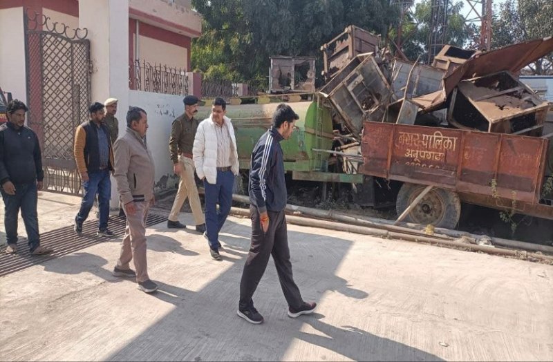 अनूपगढ़ निरीक्षण के दौरान पड़े कबाड़ को देखकर दिशा निर्देश देते जिला कलक्टर।