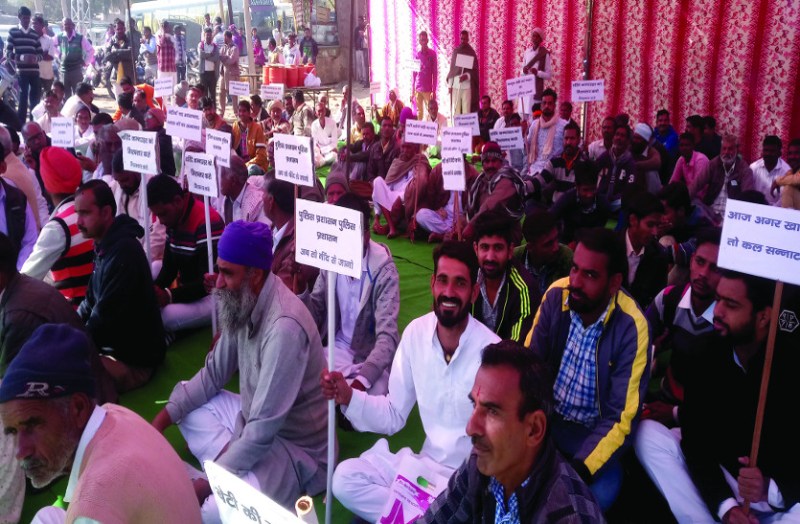 पीडि़त पक्ष व विभिन्न संगठनों ने थाने के समक्ष दिया धरना