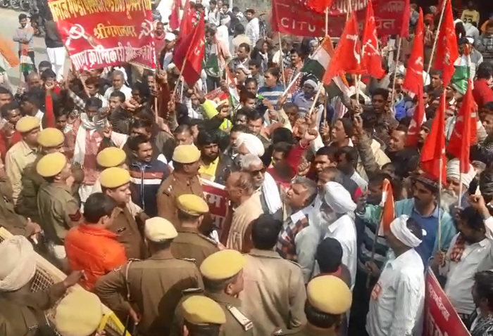 केन्द्र व राज्य सरकार की मजदूर विरोधी व जनविरोधी नीतियों के विरोध में बुधवार को श्रमिक संगठनों की ओर से कलक्ट्रेट के बाहर धरना-प्रदर्शन किया और कलक्टर के मार्फत राष्ट्रपति के नाम ज्ञापन एसडीएम को सौंपा। इसके बाद श्रमिक संगठनों की ओर से गिरफ्तारियां दी गई। श्रमिक संगठनों के पदाधिकारी व कार्यकर्ता बुधवार को नेहरू पार्क में एकत्रित हुए। वहां से जुलूस के रूप में कलक्ट्रेट के बाहर पहुंचे और वहां धरना-प्रदर्शन किया। कार्यकर्ता सडक़ पर बैठ गए और सरकार विरोधी नारे लगाए। इस दौरान कलक्ट्रेट के बाहर भारी पुलिस फोर्स तैनात रही।