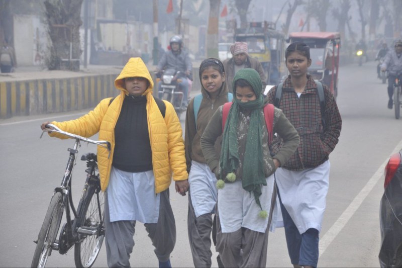 श्रीगंगानगर. कोहरे और कड़ाके की ठंड के बीच स्कूल जाती छात्राएं।
