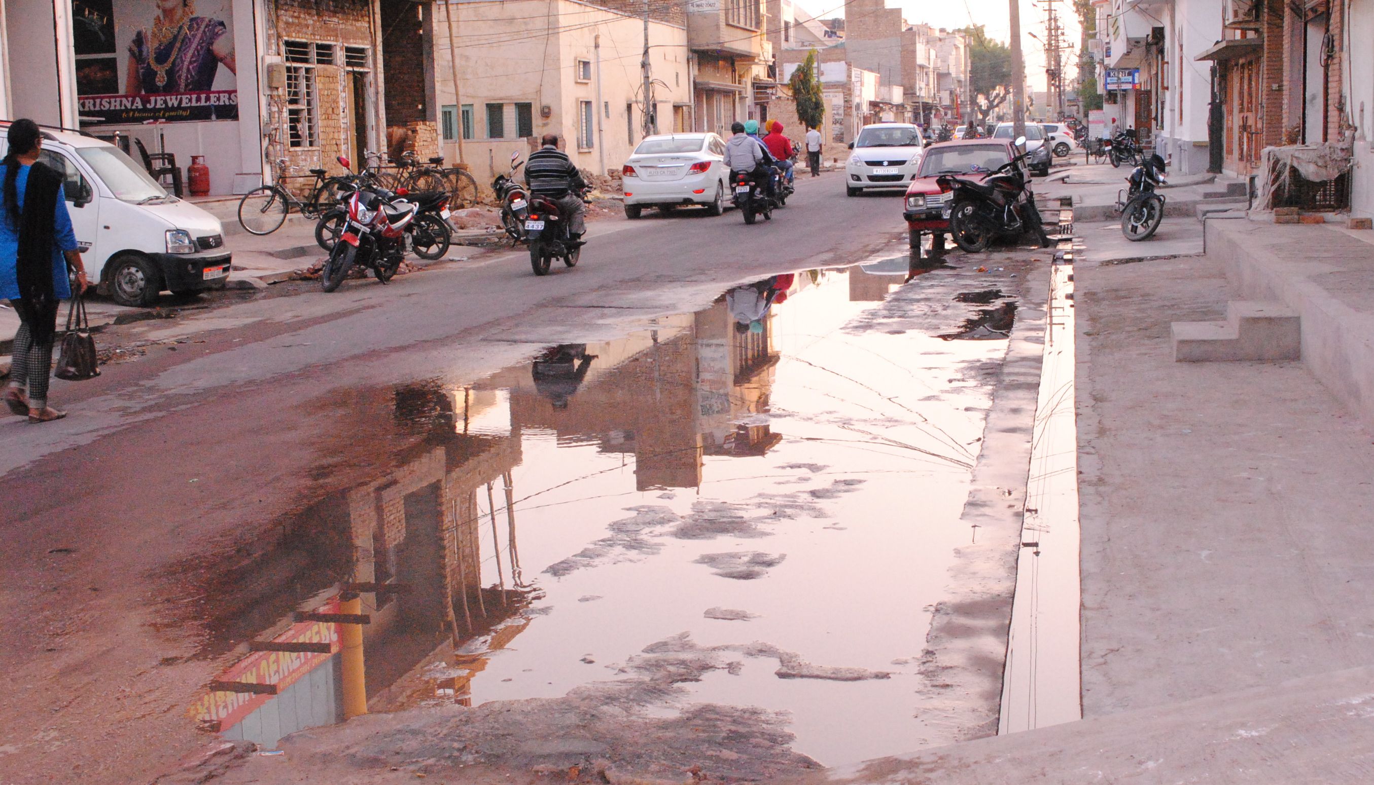 शहर की विनोबा बस्ती, डी सहित ब्लॉक एरिया में पानी सड़कों पर बिखर रहा है। नालियां कचरे, गाद और गंदे पानी से अटी हैं। लोगों की शिकायतों के बावजूद सफाई नहीं हो रही। वार्ड 26, ई ब्लॉक की पार्षद कर्मजीत कौर वालिया के तो घर के आगे ही गंदा पानी भरा है। वहीं, एच ब्लॉक, ई ब्लॉक, आचार्य तुलसी मार्ग, भारतीय खाद्य निगम कार्यालय के पास आदि जगह भी कमोबेश यही हाल है।