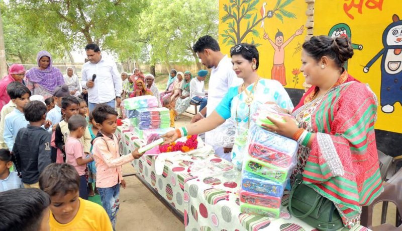 श्रीगंगानगर। अमूमन तौर पर शादी या बेटे के जन्म होने की खुशी में बधाई लेने के लिए किन्नर समूह आता हैं। लेकिन इस बार इलाके में दो किन्नरों ने मानवता का परिचय देते हुए आजादी का जश्न अनूठे ढंग से मनाया हैं। सादुलशहर क्षेत्र के चक खारा के राजकीय उच्च माध्यमिक विद्यालय में किन्नर गुरु माई करिश्मा भारती और उनकी शिष्या तराना ने बच्चों को पुरुस्कार बांटे। इस मौके पर आयोजित कार्यक्रम में गुरु माई करिश्मा भारती की ओर से 210 बच्चों को टिफिन बॉक्स, पाठय सामग्री की किट वितरित की। गुरु माई भारती का कहना था कि सरकारी स्कूलों में पढ़ने वाले बच्चों के प्रति उनका मोह काफी रहता हैं। मानवता ही सबसे बड़ा धर्म हैं। उनका आमजन ही परिवार हैं, इसलिए मायूस बच्चों से ज्यादा लगाव रहता हैं। इससे पहले प्रिंसीपल शशीबाला और खारा चक किल्लांवाली के सरपंच महेन्द्र कुमार मेघवाल ने इन दोनों का भव्य स्वागत किया। इस मौके पर शिक्षक विजय स्वामी, कविता, पीटीआई अवतार, लक्ष्मणराम आदि मौजूद थे।