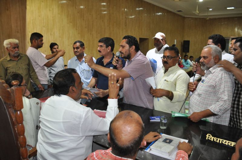 बैठक शुरू होते ही उप-सभापति अजय दावड़ा व पार्षद संजय बिश्नोई ने नगर पालिका एक्ट की धारा 51 की पालना नहीं करने पर आठ माह तक साधारण सभा की बैठक तक नहीं बुलाई गई। उन्होंने सभापति व आयुक्त पर भ्रष्टाचार करने का आरोप लगाते हुए कहा कि 15 जून को होर्डिंग का ठेका समाप्त हो चुका है। इसके बावजूद ठेकेदार कथित रूप से अवधि समाप्त होने के बावजूद शहर में अवैध रूप से होर्डिंग लगाने वाली फर्म के खिलाफ कोई कार्रवाई नहीं की गई। इसको लेकर आयुक्त व परिषद अधिकारियों को घेरने की कोशिश की गई। पार्षद पवन गौड़ ने पार्षदों की ओर से उठाए गए प्रश्नों का जवाब नहीं मिलने पर आयुक्त सुनीता चौधरी को धरना लगाने की चेतावनी दी गई। पार्षद हरविंद्र पांडे,कमला बिश्नोई,राजा चुघ,सलीम अली चोपदार आदि ने शहर हित में एजेंड पर चर्चा करने की अपील की गई, लेकिन पार्षदों के हंगामे के कारण यह अनसुनी होती रही। 40 मिनट तक हंगामें के बाद निर्धारित एजैंडे पर चर्चा शुरू हो पाई।