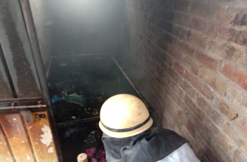 घर के स्टोर में लगी आग कपड़े व घरेलू सामान जला