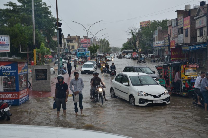 SriGanganagar शहर में बाढ़ जैसे हालात, सड़कों पर घुटनों तक पानी