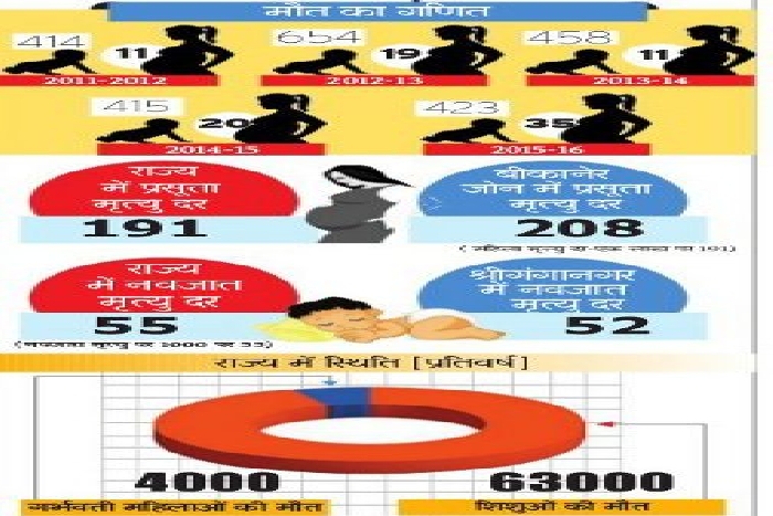 श्रीगंगानगर जिले में पिछले पांच साल में एक लाख 74 हजार 48 संस्थागत प्रसव करवाए गए। इस बीच 96 प्रसूतों की मौत हुई और 2364 नवजात (0-5 साल) की भी जान जा चुकी है। इस बीच न कुशल हुआ और ना मंगल। जिले में प्रसूता और नवजात की मौत का सिलसिला थम नहीं रहा।