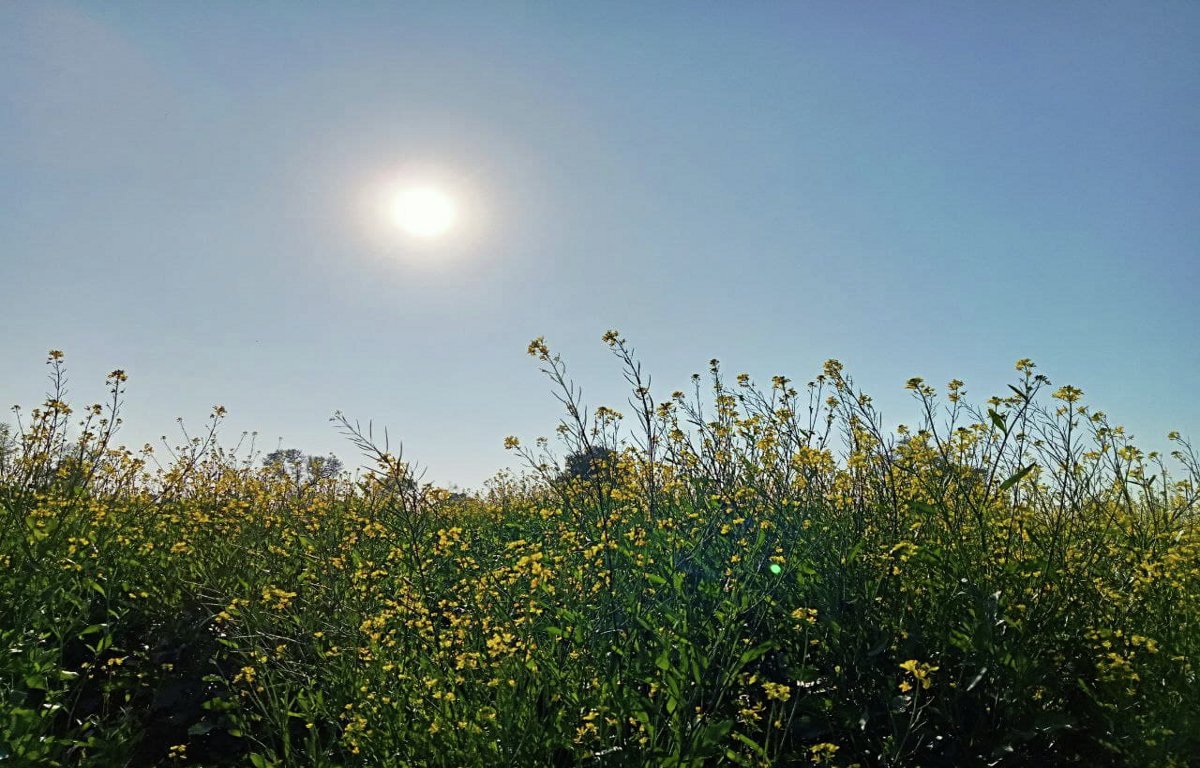 केसरीसिंहपुर.एक खेत में उगी सरसों की फसल और तपता सूरज।
