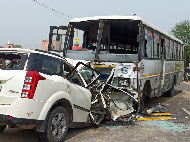 #Road accident पदमपुर रोड पर चूनावढ़ और गांव भगवानसर के बीच हुए सडक हादसे में कार सवार पंजाब के युवा, उसकी पत्नी, मां और डेढ़ साल की भांजी कुल चार जनों की दर्दनाक मौत हो गई। जबकि उसकी सगी बहन की हालत नाजुक हैं। इस गंभीर घायल का प्राइवेट हॉस्पिटल में उपचार किया जा रहा है। यह हादसा इतना भीषण था कि कार में सवार एनआरआई और उसकी मां व पत्नी तीनों की मौके पर ही मौत हो गई जबकि कनाडा मूल की उसकी डेढ़ वर्षीय भांजी को किसी तरह यहां राजकीय जिला चिकित्सालय पहुंचाया लेकिन उसने भी दम तोड़ दिया। वहीं एनआरआई बहन की हालत नाजुक बनी हुई। यह कार पदमपुर से पंजाब जा रही थी जबकि राजस्थान रोडवेज की बस श्रीगंगानगर से रवाना होकर पदमपुर जा रही थी। यह दुर्घटना दोपहर करीब बारह बजे के आसपास हुई। एक ट्रेक्टर ट्रॉली को ओवरटेक करते हुए कार तेज गति से आगे जाने लगी तभी सामने से राजस्थान रोडवेज आ गई। इस दुर्घटना में कार के अगले हिस्से के परचखे उड़ गए। इस दुर्घटना में राजस्थान रोडवेज में सवार सात-आठ सवारियाें के चोटें आई हैं, इनमें चार महिला यात्रियों को भर्ती कराया गया है।
