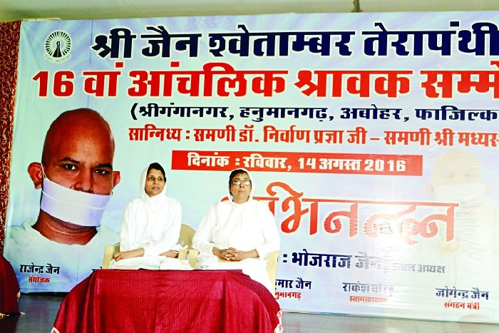 श्री जैन श्वेतांबर तेरापंथी आंचलिक श्रावक सम्मेलन रविवार को राजवंश गार्डन में हुआ। इस आयोजन को लेकर समाज के बंधुओं में उत्साह कितना था इसका अंदाजा इसी से लगाया जा सकता है कि यहां दो बार कुर्सियां कम पड़ गईं। एक बार तो 250 कुर्सियां दुबारा मंगवानी पड़ी। इस सम्मेलन में श्रीगंगानगर, हनुमानगढ,़ अबोहर, फाजिल्का अंचल के 40 से ज्यादा स्थानों से 1000 से अधिक लोग पहुंचे। वक्ताओं ने खासकर समाज की एकता पर बल दिया। आयोजन में महिलाओं की संख्या भी लगभग बराबर सी थी। कार्यक्रम में तेरापंथी सभा अध्यक्ष राकेश बोरड़, आंचलिक समिति के अध्यक्ष भोजराज जैन सहित पूरा समाज मौजूद रहा। यह आयोजन समणी निर्वाण प्रज्ञा और समणी मध्यस्थ प्रज्ञा के सानिध्य में संपन्न हुआ।