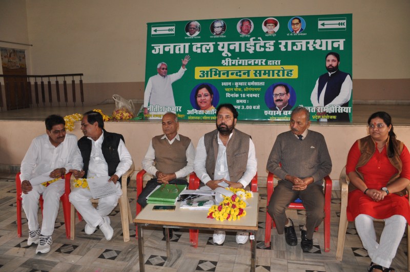 पैंसिया ने कहा कि बिहार में मुख्यमंत्री नीतिश कुमार ने वास्तविक रूप से पिछड़े लोगों को आरक्षण का लाभ दिया है। उनकी पार्टी भी इसी नीति पर काम कर रही है। किसानों के हित में स्वामीनाथन रिपोर्ट लागू करवाकर फसलों के वाजिब दाम दिलवाना, डोली भूमि की खातेदारी काश्तकारों के नाम करवाना, प्रदेश में पूर्ण शराब बंदी और दहेज प्रथा और बाल विवाह उन्मूलन के मुद्दों पर पार्टी काम कर रही है। प्रदेश महासचिव श्याम वर्मा ने कहा कि सामाजिक लोकतंत्र को मजबूत करने के लिए पार्टी काम कर रही है। छोटे-छोटे समूह जो अपने आप को उपेक्षित महसूस कर रहे हैं उन्हें पार्टी सम्मानपूर्वक आगे बढऩे का मौका दे रही है। इस मौके पर महिला विंग की प्रदेशाध्यक्ष अनिता जांगिड़ भी मौजूद थीं।