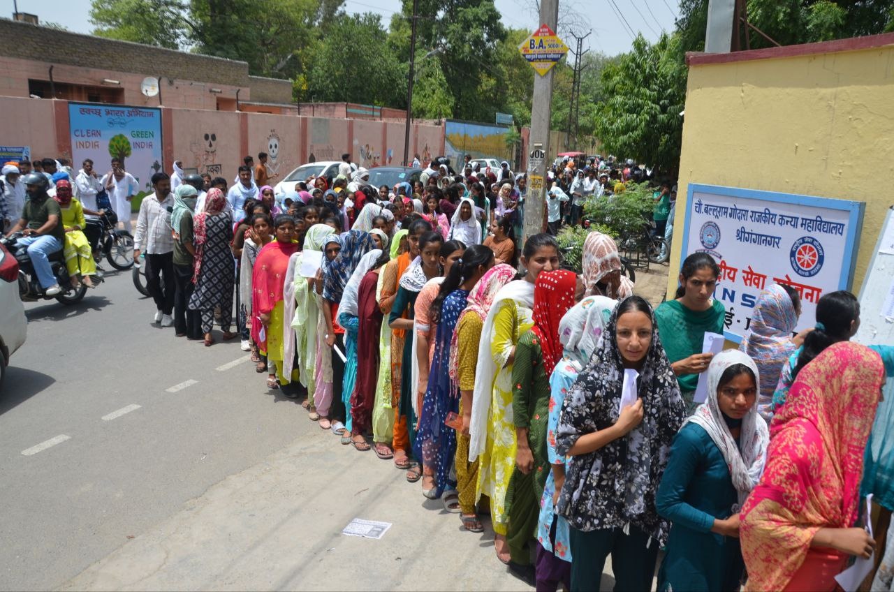 रविवार को दूसरी पारी के परीक्षार्थियों औरउनके अभिभावक परीक्षा केन्द्रों के बाहर पहुंचे। भीषण गर्मी में वहां एक मिनट खड़ा होने पर पसीने दूट रहे थे। लेकिन धूप से बचाव का सहारा नहीं था। ऐसे में कइ्रयों ने परीक्षा केन्द्र के बाहर छोटे पेड़ की ओट का सहारा लिया तो किसी ने आसपास दुकानों के शैड के नीचे राहत ली। ऐसा ही नाजारा चौधरी बल्लूराम गोदारा गर्ल्स कॉलेज के मुख्य गेट पर देखने को मिला। वहां ज्यादातर युवतियां परीक्षा देने आई। इस गेट के अंदर प्रवेश करना चाहा तो कॉलेज की मैडम ने साफ इनकार कर दिया। ऐसे में ये छात्राएं बार बार मैडम प्लीज देखो धूप इतनी ज्यादा है कि जैसे भटटी जल रही हो। लेकिन मैडम ने वहां सुरक्षा गार्ड को साफ निर्देश दिए कि कोई भी परीक्षार्थी गेट के अंदर निर्धारित समय में प्रवेश नहीं कर पाया। गेट पर खड़े सुरक्षा गार्ड इन मासूम चेहरो को देखकर खुद पसीज रहा था लेकिन नो एंट्री के आदेश की पालना भी करानी थी। ऐसे मे इस परीक्षा केन्द्र पर दोपहर करीब एक घंटे तक इन परीक्षार्थियों की धूप परीक्षा देने पड़ी। यही हाल बिहाणी कॉलेज के बाहर का था। यहां भी लोग अपनी बेटियों को लेकर पहुंचे तो गेट पर निर्धारित समय से पहले नो एंट्री का टका सा जवाब मिला। ऐसे में लोग डिवाइडर पर खड़े होकर दो बजे का इंतजार किया।