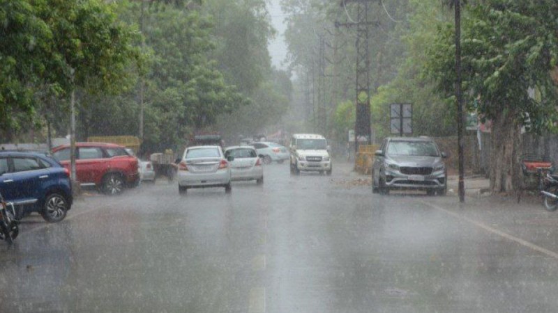 श्रीगंगानगर में रविवार दोपहर बाद जिला कलक्ट्रेट रोड पर बूंदाबांदी के दौरान गुजरते हुए वाहन।