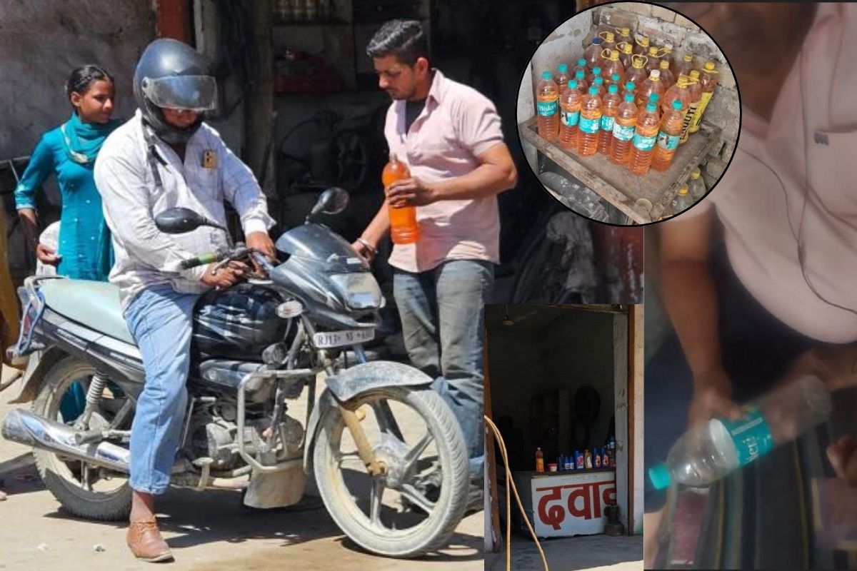 इंदिरा कॉलोनी की बाबा रामदेव मंदिर के साथ एक घर के बाहर लोग पेट्रोल लेने के लिए आए हुए थे। पत्रिका संवाददाता को दुकानदार ने चारपाई पर लेटे लेटे ही एक सौ रुपए का इशारा किया और पास पड़ी पेट्रोल की बोतल पकड़ा दी।