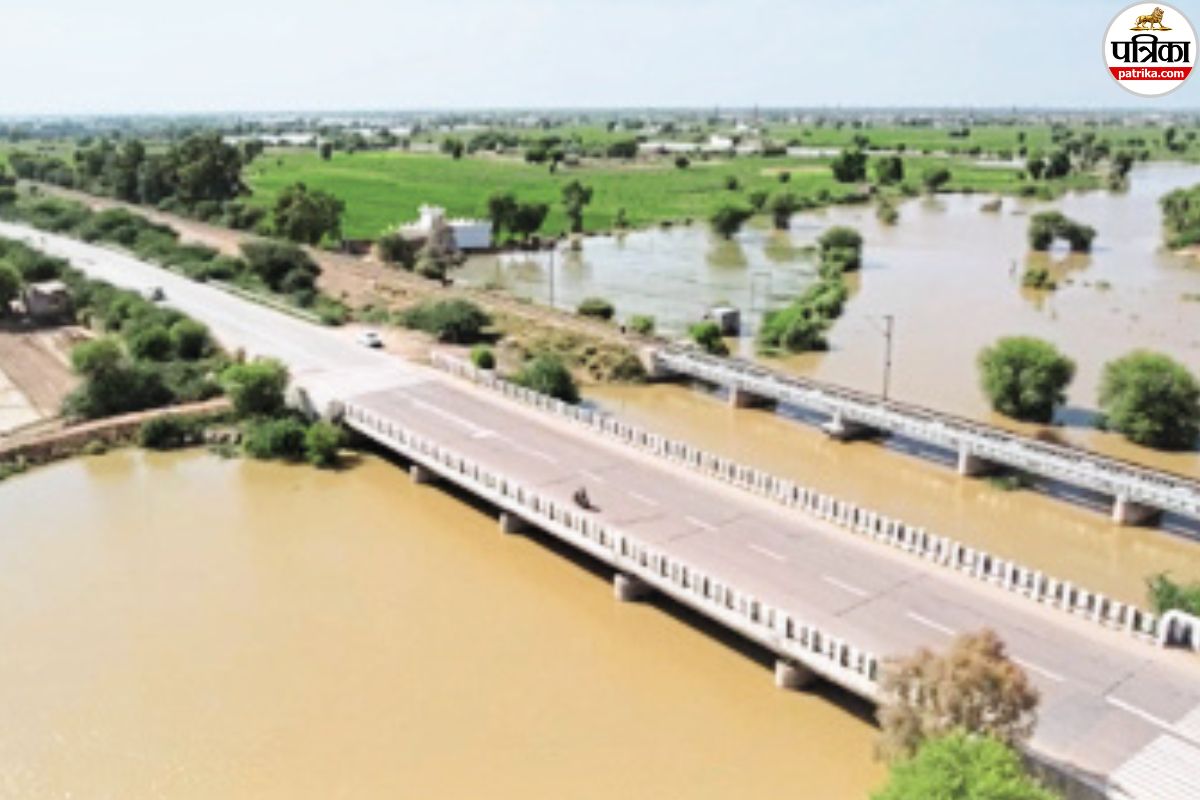 पुल के नीचे से गुजरता घग्घर का पानी (फोटो- पत्रिका)
