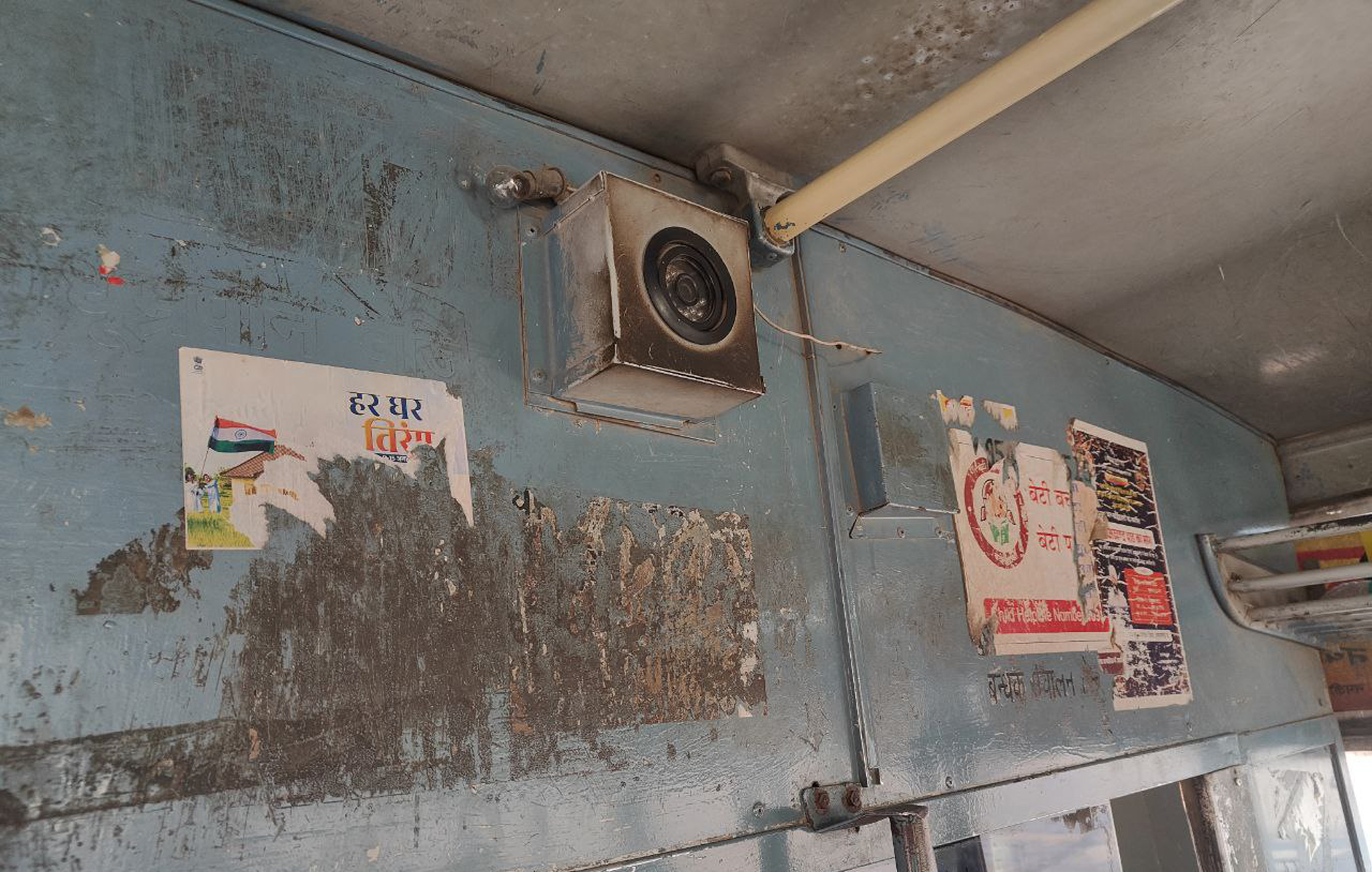 श्रीगंगानगर रोडवेज आगार की एक बस में खराब पड़ा सीसीटीवी कैमरा