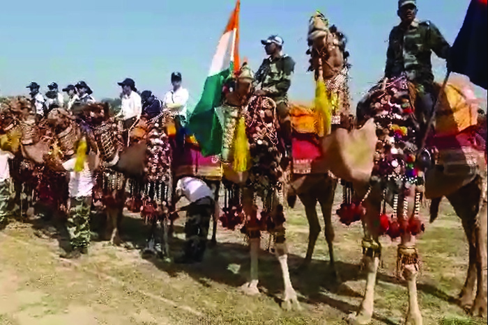 बल के पहले महिला कमाण्डो दल ने साहसिक प्रदर्शन कर तालियां बटोरी। संचालन खुशबू गोयल ने किया। सीमावर्ती गांवों में 'बेटी बचाओ-बेटी पढ़ाओ का संदेश देने के लिए कैमल सफारी बाड़मेर से बाघा बॉर्डर तक निकाली जा रही है। सीमा सुरक्षा बल की अधिकारी तनुश्री पारीक, वायु सेना की स्कवाड्रन लीडर अन्युश्का लोमस सहित अन्य अधिकारी इसमें भाग ले रही हैं।