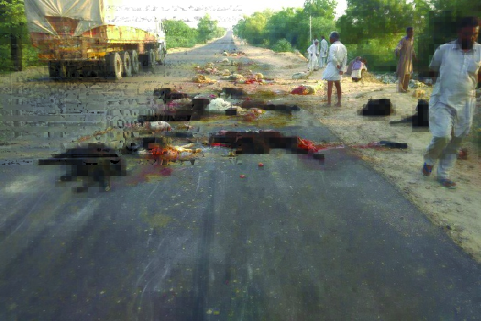ट्रक के रेनड़ पर चढाने के बाद हादसे में मरी दर्जनो गर्भवती भेड़ बकरीयो के पेट के गर्भ से बच्चे निकल कर सड़ पर बिखर गए। इस दर्दनाक हादसे को देखकर हर कोई सहम गया।