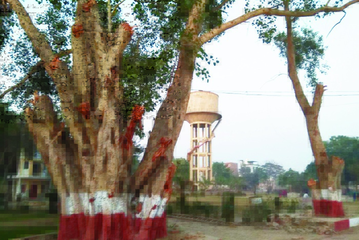 लेकिन नगरपालिका प्रशासन ने इसके विपरीत वहां परिसर में खड़े करीब सौ वर्ष पुरानी धरोहर पीपल के दो विशालकाय पेड़ों को काटकर धार्मिक आस्था पर चोट की है। यह एक जघन्य अपराध होने के साथ असहनीय है। ज्ञापनदाताओं ने मामले में नगरपालिका प्रशासन पर कठोर कार्रवाई की मांग करते हुए कहा कि वे इस मामले में चुप नहीं रहेंगे। मौके पर संस्था के सचिव पूर्व पार्षद सुभाष बिश्नोई, संदीप गोयल, अधिवक्ता अजय बिश्नोई, अधिवक्ता सुरेश अग्रवाल, रामचंद्र शर्मा, पूर्व पार्षद रणवीरसिंह राठौड़ सहित अन्य नागरिक मौजूद थे।