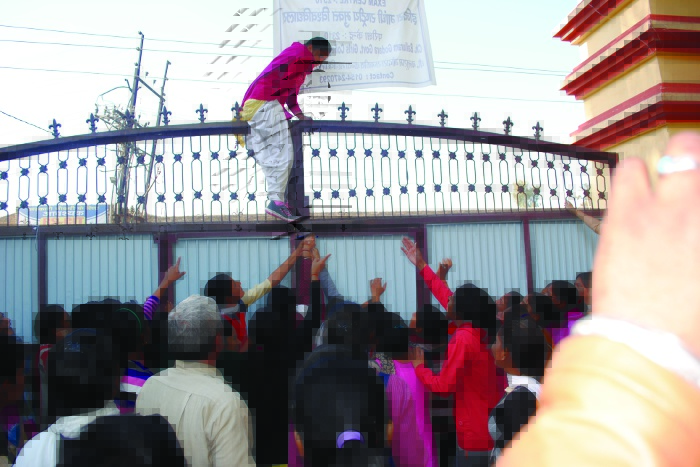 गेट पर छात्राओं ने ताला लगा दिया। इस कारण ना किसी को अंदर आने दिया और ना किसी को बाहर जाने दिया। इसको लेकर कॉलेज में छात्राओं को जबरदस्त आक्रोश देखने को मिला। कॉलेज के प्रचार्य वीसी में गए हुए थे अन्य कॉलेज व्याख्याताओं की छात्राओं ने एक नहीं सुनी और जमकर आक्रोश व्यक्त किया। मौका पर कोतवाली की एसआई ज्योति नायक ने पहुंच कर मुख्य गेट पर ताला खुलवाया।