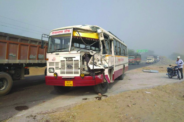घायलो में एक महिला व दो पुरुषो के मामुली चोट लगी। टक्कर इतनी तेज थी की बस के एक तरफ का हिस्सा क्षतिग्रस्त हो गया व शीशे टूट गए। घटना के बाद हाईवे पर दोनो तरफ दो किमी तक लम्बा जाम लग गया। धुंध शुरु होते ही तेज गति व लापर वाही से चल रहे वाहन ऑवर टेक के चक्कर में हादसे के शिकार हो रहे है।