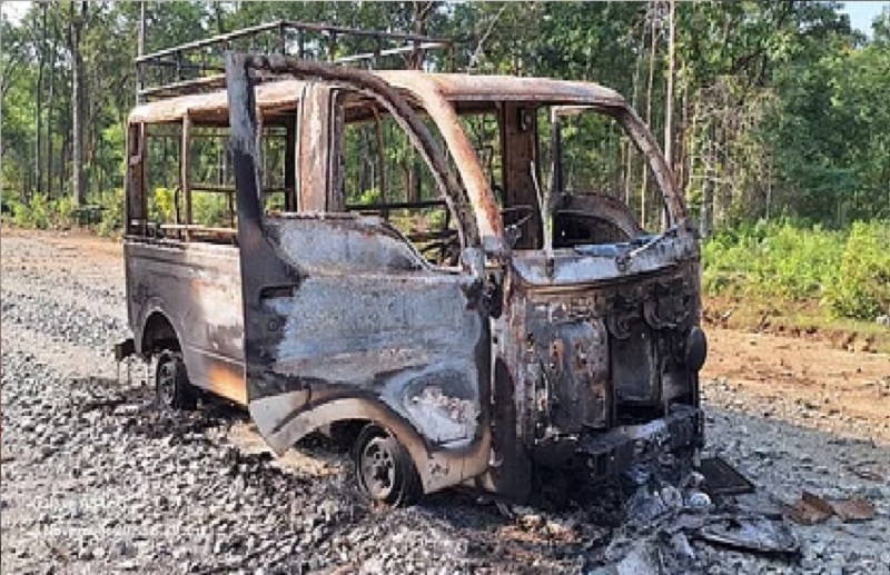 चुनाव से पहले नक्सलियों ने दो वाहनों में की आगजनी