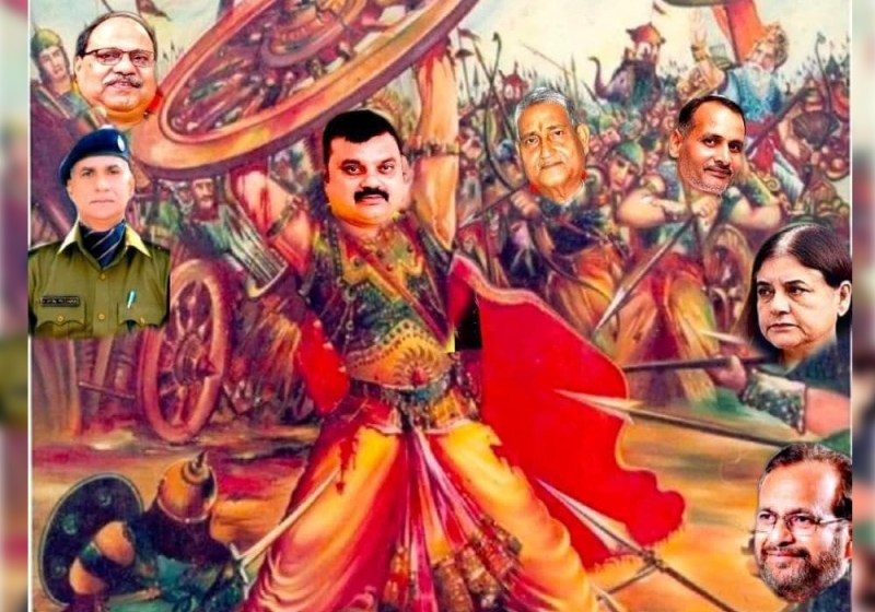 सुलतानपुर. जनपद के इसौली विधानसभा क्षेत्र के पूर्व विधायक रहे बाहुबली चन्द्रभद्र सिंह उर्फ सोनू एवं उनके अनुज पूर्व ब्लॉक प्रमुख यशभद्र सिंह मोनू का सोशल मीडिया पर एक पोस्ट वायरल हो रहा है। वायरल पोस्टर में बाहुबली पूर्व ब्लॉक प्रमुख यशभद्र सिंह मोनू को अभिमन्यु की भूमिका में दर्शाया गया है और कौरवों के रूप में भाजपा जिलाध्यक्ष डॉक्टर आर.ए वर्मा, सुलतानपुर विधायक सूर्यभान सिंह, कादीपुर विधायक राजेश गौतम के साथ युद्ध चित्रण के साथ भाजपा नेता शिव कुमार सिंह और पूर्व मंत्री विनोद सिंह भी पोस्टर युद्ध में शामिल दर्शाए गए हैं। अभिमन्यु के चरित्र में दिखाए गए पूर्व ब्लॉक प्रमुख मोनू सिंह के हाथ में रथ का पहिया दिखाया गया है, जो कौरव रूपी भाजपा नेता से घिरे हैं और उनसे युद्ध कर रहे हैं। पोस्टर वायरल होने के बाद पुलिस विभाग के सोशल मीडिया सेल ने मामले की जांच पड़ताल शुरू कर दी है। हालांकि, खबर लिखे जाने तक एसपी या किसी वरिष्ठ अधिकारी का कोई अधिकृत बयान नहीं आया है।