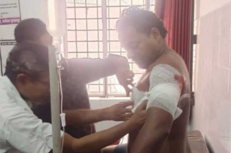 सुल्तानपुर में गोली लगने घायल युवक का अस्पताल में इलाज करते डॉक्टर।