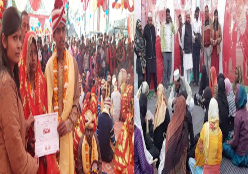 सुलतानपुर. मुख्यमंत्री सामूहिक विवाह योजना के तहत धनपतगंज ब्लॉक पर 50 जोड़ों ने साथ जीने-मरने की कसम खाकर एक दूसरे के जीवन साथी बन गए। सामूहिक विवाह कार्यक्रम में एक दिव्यांग जोडा सहित आठ मुस्लिम और 41 हिन्दू जोड़े परिणय सूत्र बन्धन में बंध गये।