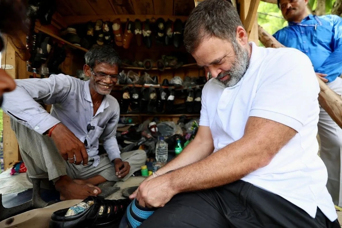 कोर्ट से निकलने के बाद रामचेत मोची की दुकान पर पहुंचे राहुल गांधी, (फोटो- 2024 की है जब पहली बार रामचेत से राहुल गांधी मिले थे)