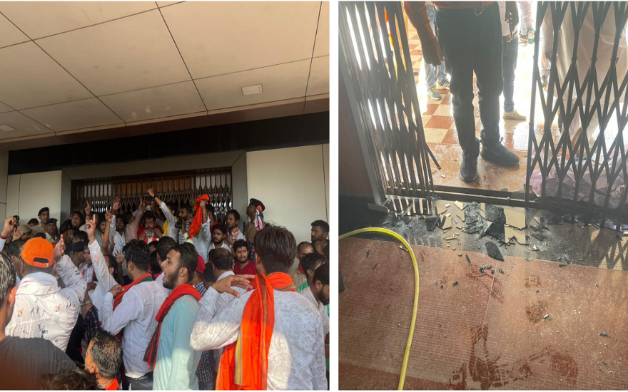 यहां उन्होंने संयुक्त जिला कार्यालय के स्लाइडिंग गेट में तोडफ़ोड़ करते हुए शीशे तोड़ दिए थे। तोडफ़ोड़ के दौरान भाजयुमो शहर मंत्री संस्कार अग्रवाल को चोटें आईं और वह बेहोश हो गया था, जिसे अस्पताल ले जाया गया था।