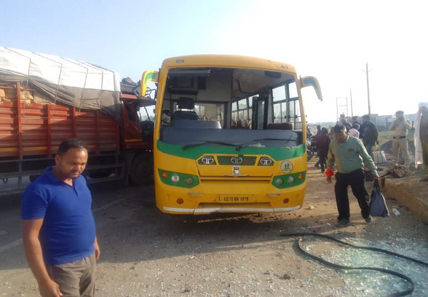 प्रत्यक्षदर्शियों का कहना है कि ट्रक चालक को अचानक झपकी आने से उक्त दुर्घटना हुई। घटना में बस व ट्रक चालक को भी चोटें आर्इं हैं। बस में करीब 17 लोग सवार थे।