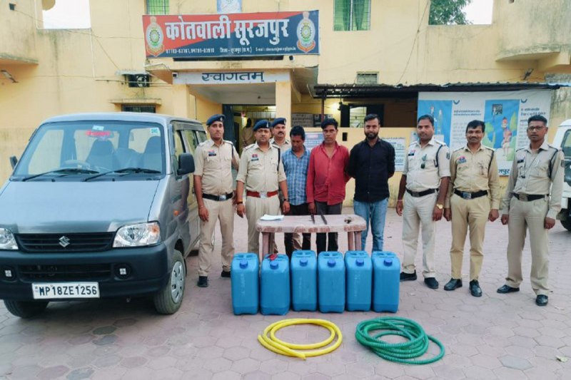 कोतवाली पुलिस ने इनके पास से घटना (Diesel loot gang arrested) में प्रयुक्त इको कार, 1 जरकिन में 35 लीटर डीजल, 5 खाली जरकिन, लोहे का रॉड, एक गुलेल व गुलेल की गोटी जब्त किया है।