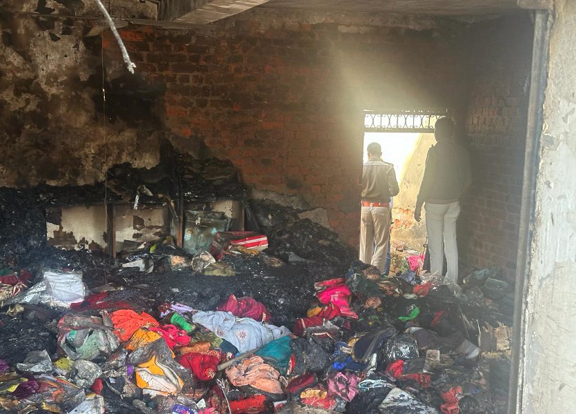 गैस लिकेज व सिलेंडर ब्लास्ट के कारण लगी आग