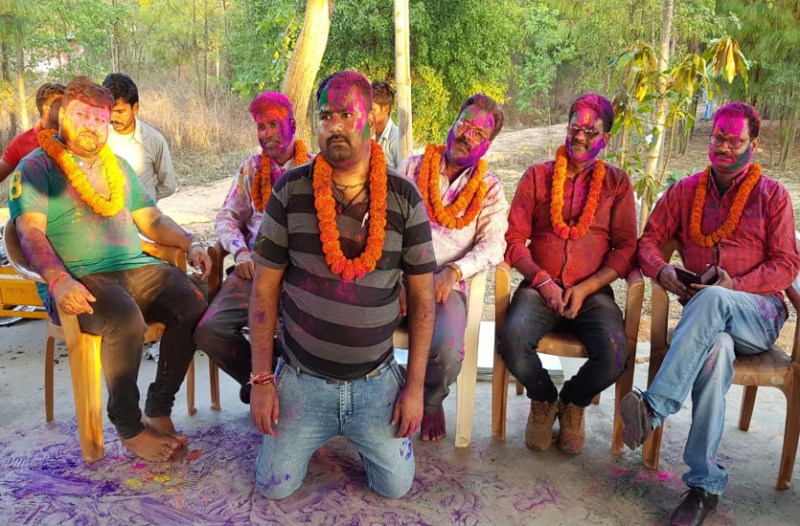 सूरजपुर. सूरजपुर के शिव पार्क में मंगलवार को शिक्षक फेडरेशन द्वारा होली मिलन समारोह का आयोजन किया गया। इसमें जिले भर के संघ के कर्मचारी-अधिकारी उपस्थित थे। आयोजित कार्यक्रम में शिक्षकों ने ढोल-मजीरा के थाप पर जमकर फाग गाया और एक दूसरे को गुलाल लगाकर होली की शुभकामनाएं दी।