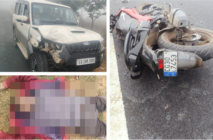 स्कॉर्पियो सवार तखतपुर बिलासपुर से डेड बॉडी लेकर बनारस जा रहे थे। टक्कर इतनी जबरदस्त थी कि बाइक सवार हवा में उछलते हुए पुलिया के नीचे जा गिरा। सिर में गंभीर चोट लगने से उसकी मौके पर ही मौत हो गई।
