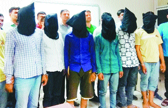 संयुक्त पुलिस आयुक्त खुर्शीद अहमद ने बताया कि पकड़े गए अभियुक्तों में भावनगर जिले की महुवा तहसील के उगलवाण गांव निवासी गिरीश डाह्या नकुम (31), शिहोर तहसील के करदेज गांव निवासी शैलेष मेरा डांगर (31), उमराला तहसील के जांजमेर गांव निवासी भरत उर्फ बापू मोहनदास देवमोरारी (28), कापोद्रा दशरथनगर सोसायटी निवासी निलेश उर्फ टोपी रमेश साकरिया, पूणागाम मुक्तिधाम सोसायटी निवासी प्रवीण उर्फ पी.डी.दुलाभाई लाडूमोर (24) और भावनगर जिले की शिहोर तहसील के राजपरा गांव निवासी हितेश लक्ष्मण खमल आहिर (20)शामिल हंै।