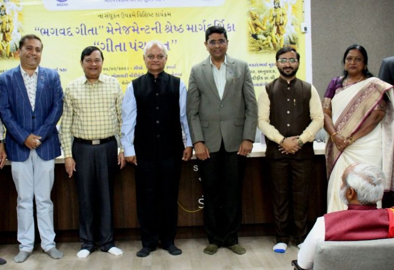 इससे पहले चैंबर अध्यक्ष हिमांशु बोडावाला ने कहा कि आधुनिक प्रबंधन में गीता की शिक्षाओं से प्रेरित दृष्टि, मिशन, योजना, नेतृत्व और प्रेरणा जैसी विभिन्न अवधारणाएं शामिल हैं। दुनिया भर के प्रबंधन गुरुओं ने गीता की शिक्षाओं को अपने प्रबंधन सिद्धांतों में शामिल किया है। भारत विकास परिषद सूरत के अध्यक्ष रुपिन पच्चीगर ने कहा कि भगवद गीता को हार्वर्ड यूनिवर्सिटी ने एक पाठ्यपुस्तक के रूप में स्वीकार किया है। यह ज्ञान, जीवन शैली और प्रबंधन का ग्रंथ है। चेम्बर के मानद मंत्री भावेश टेलर ने कार्यक्रम का संचालन किया और मानद कोषाध्यक्ष भावेश गढ़िया ने आभार व्यक्त किया।