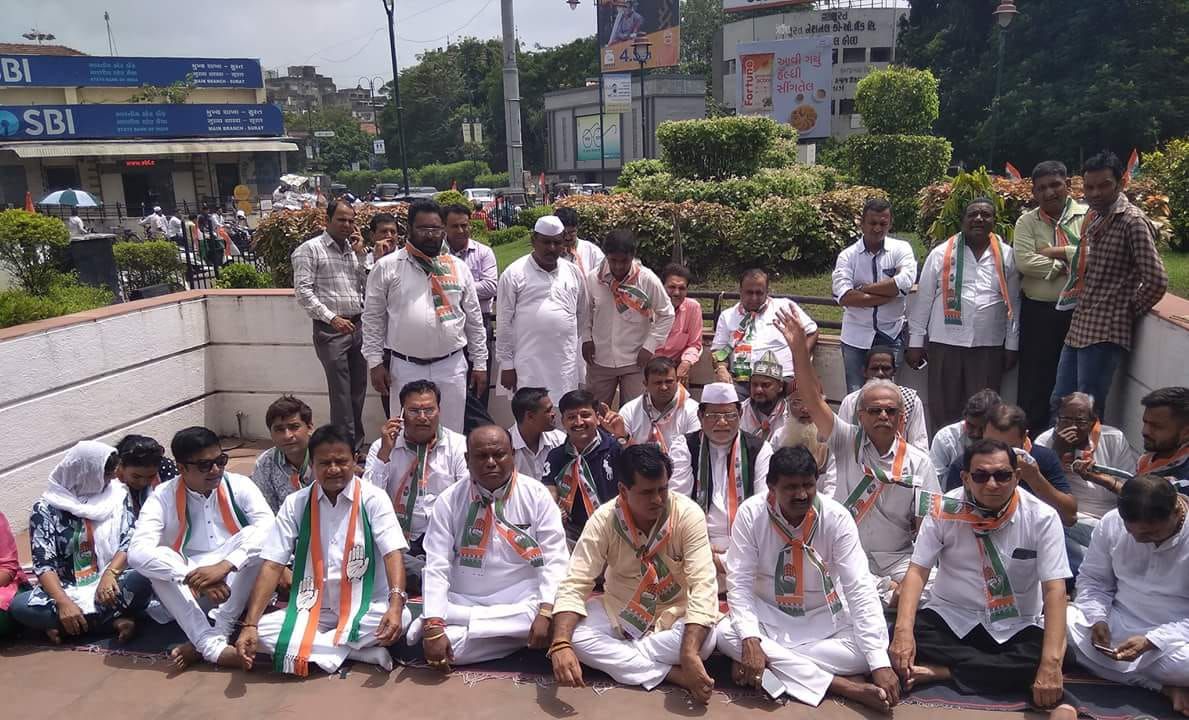 कांग्रेस ने गांधी प्रतिमा के समक्ष दिया धरना