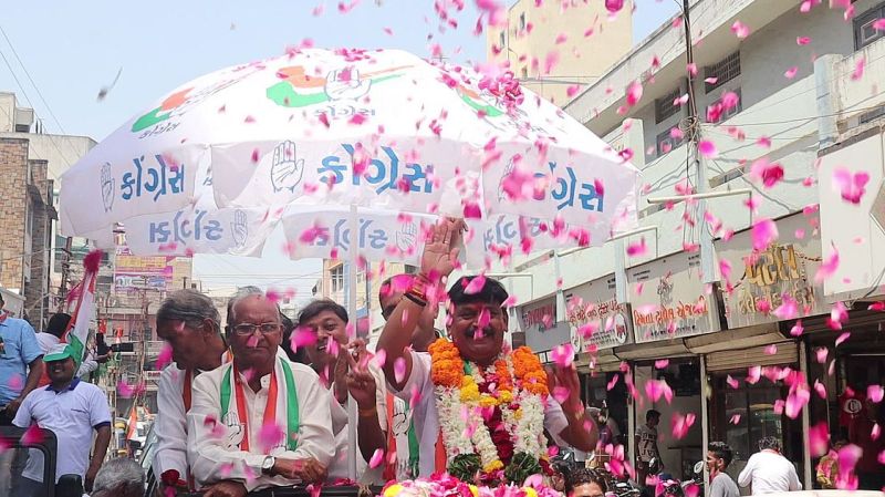 नवसारी. नवसारी संसदीय सीट पर बुधवार को धर्मेश पटेल ने कांग्रेस प्रत्याशी के तौर पर नामांकन किया। सिद्धि विनायक मंदिर में दर्शन करने के बाद धर्मेश पटेल समर्थकों की रैली के साथ नामांकन कार्यालय पहुंचे थे। इस सीट पर कांग्रेस ने पहली बार स्थानीय और कोली समाज के धर्मेश पटेल को चुनाव मैदान में उतारा है। बुधवार को हीरा मेन्शन स्थित सिद्धि विनायक मंदिर में पूजा अर्चना के बाद खुली जीप में सवार होकर नवसारी के फव्वारा पहुंचे धर्मेश पटेल ने महात्मा गांधी की प्रतिमा पर पुष्पांजलि अर्पित की। यहां से जूना थाना पहुंचकर धर्मेश पटेल ने पूर्व प्रधानमंत्री इंदिरा गांधी की प्रतिमा पर हार चढ़ाकर उन्हें श्रद्धांजलि अर्पित की। इसके बाद संसदीय सीट में शामिल सातों विधानसभा क्षेत्र से आए कांग्रेसी कार्यकर्ता व समर्थकों को लेकर गाजे बाजे के साथ रैली लेकर कलक्ट्रेट पहुंचे। मुख्य निर्वाचन अधिकारी डॉ. एमडी मोडिया के समक्ष उन्होंने नामांकन करने के बाद चुनाव संबंधी शपथ ली।