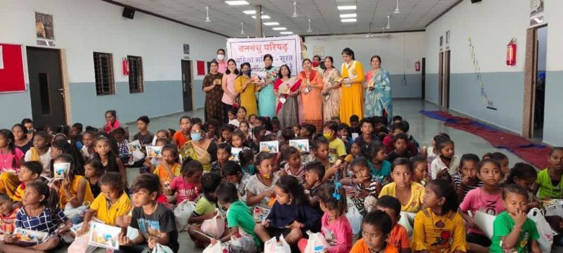 सूरत. वनबंधु परिषद महिला समिति की ओर से दीपावली के उपलक्ष में शबरी बस्ती के बच्चों के साथ दीपावली उत्सव का आयोजन सिटीलाइट के अग्र्रम स्किल डवलपमेंट सेंटर में किया गया। उत्सव के दौरान शबरी माता पूजन, रामायण कथा श्रवण समेत अन्य धार्मिक कार्यक्रम आयोजित किए गए। इस मौके पर बच्चों को मिट्टी के दीये, हनुमान लॉकेट, हनुमान चालीसा, शबरी माता की फोटो, दीपावली उपहार किट आदि बांटे गए। इस दौरान समिति की अध्यक्ष विजया कोकड़ा, सचिव अशिता नांगलिया, उपाध्यक्ष प्रेमलता गुप्ता एवं रितु गोयल, कोषाध्यक्ष पदमा तुलस्यान, स्वेता जाजू आदि मौजूद थी।